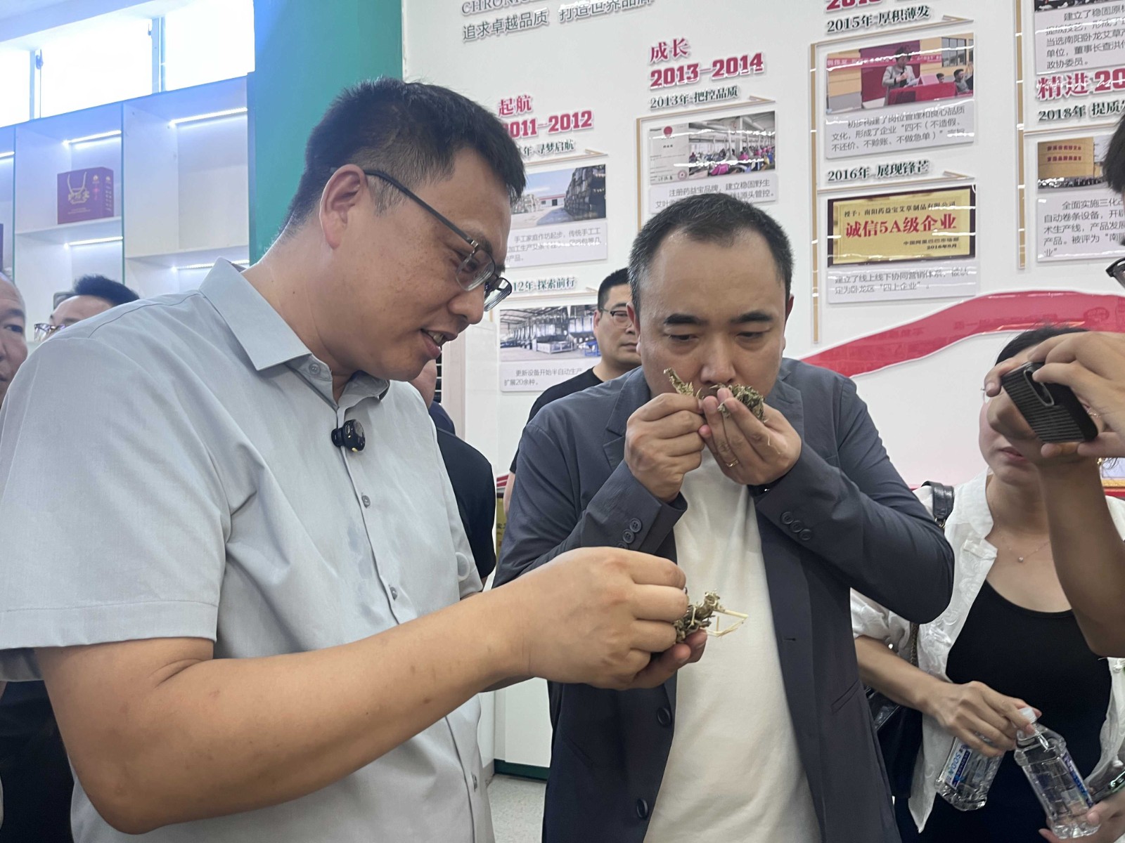 對于總顧問王新瑞的觀點,查洪付董事長深表贊同。他向我們講述了藥益寶自2011年成立以來的成長故事:從一家初創(chuàng)企業(yè)到成為集艾草制品生產、開發(fā)、研制、銷售于一體的行業(yè)標桿,藥益寶不僅帶動了當?shù)匕莓a業(yè)發(fā)展,更吸引了眾多年輕人返鄉(xiāng)創(chuàng)業(yè),用青春力量賦能鄉(xiāng)村振興。查總驕傲地表示,藥益寶始終堅守“五個唯一” 的品質承諾,十余年來實現(xiàn)零投訴的行業(yè)奇跡。這份成績單的背后,是他每年親赴各艾草產區(qū)實地考察訂購的堅持,是對每一批原料嚴格把控的執(zhí)著。座談會上,查總還毫無保留地分享了識別優(yōu)質艾草的實用方法,將多年積累的經驗傾囊相授。